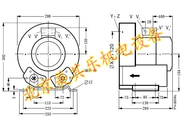 單相電850w漩渦氣泵尺寸圖