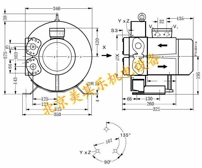 4GH410/1.1kw單葉輪漩渦式氣泵尺寸圖:
