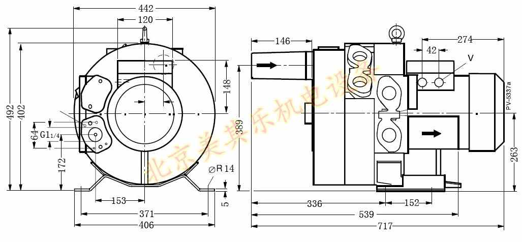 4GH630/7.5kw雙葉輪漩渦氣泵尺寸圖: