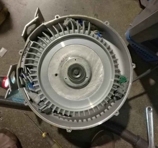 打開之后,會看到還有一個螺絲及墊片是固定葉輪的,把這顆螺絲也拿下來,到此步就可以進行更換了。